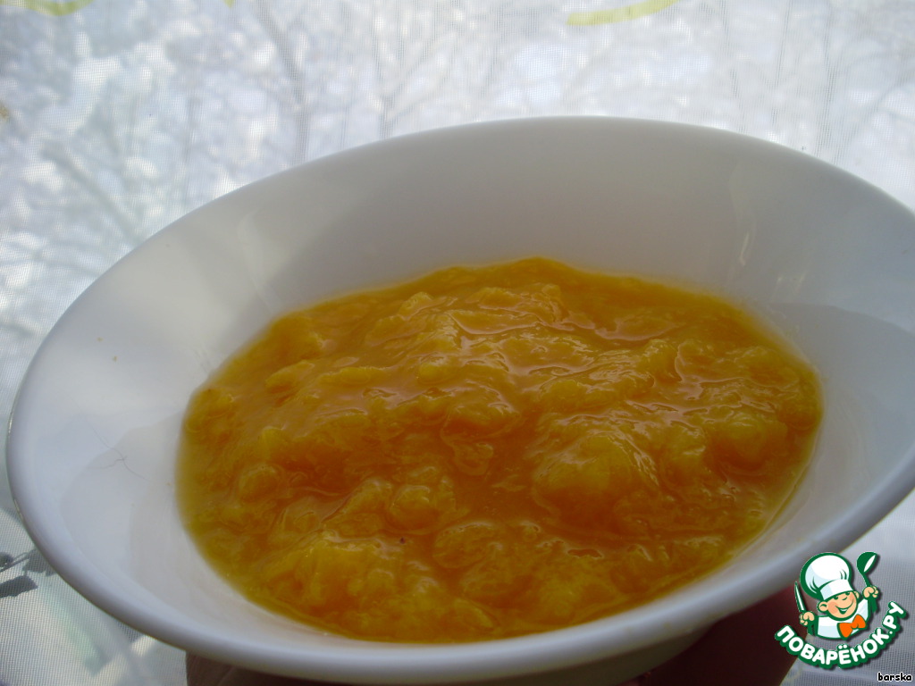 Остальные половинки персиков - измельчить и при помощи блендера превратить в пюре.