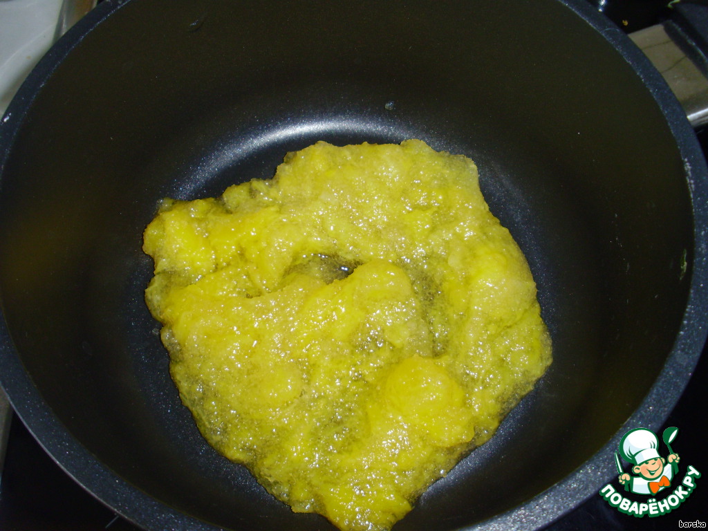 Подогреть в сотейнике желатин с небольшим количеством персикового пюре (1-2 ч.л.)