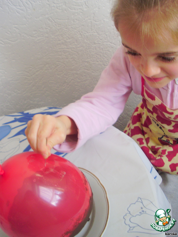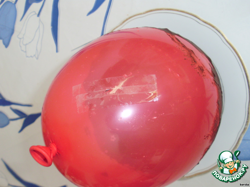 2. Другие шарики после холода я оставила на некоторое время при комнатной температуре, а потом проткнула иглой через скотч. Воздух выходил медленнее, но основа, увы, не сохранилась...