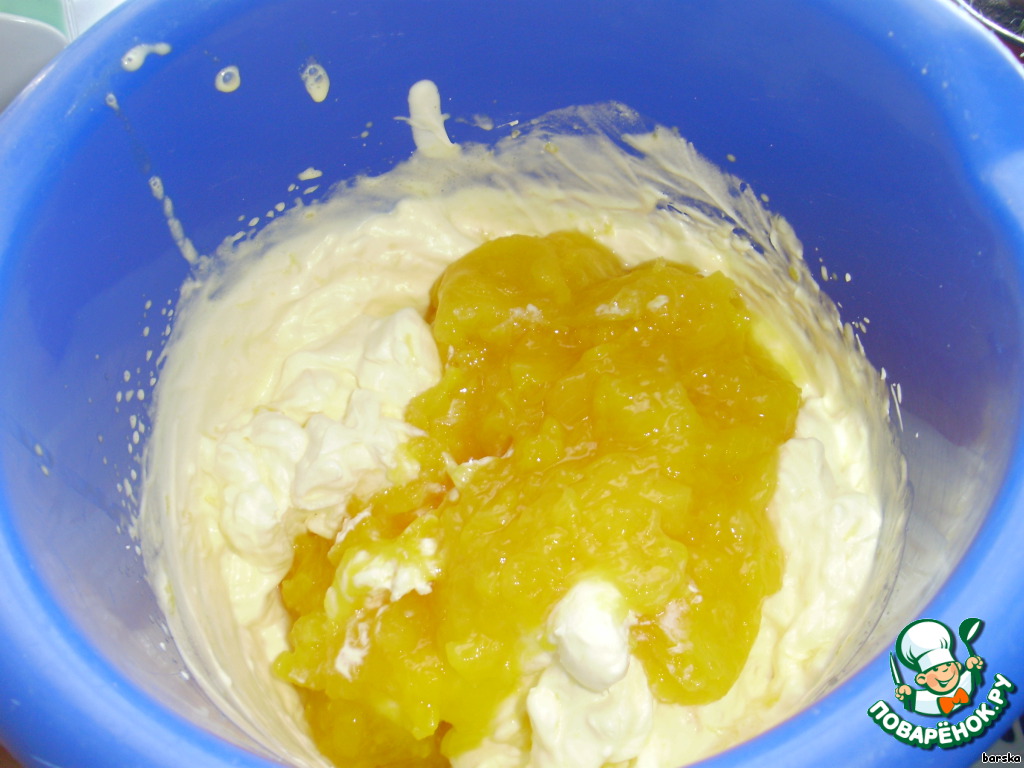 Соединить желатиново-персиковую массу со взбитыми сливками. Перемешать.