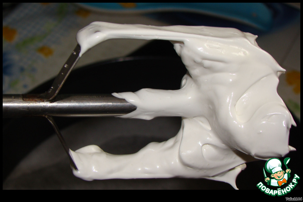 Противень застелить бумагой для выпечки и выложить в форме круга безе. Из оставшихся белков сделать маленькии безешки:)