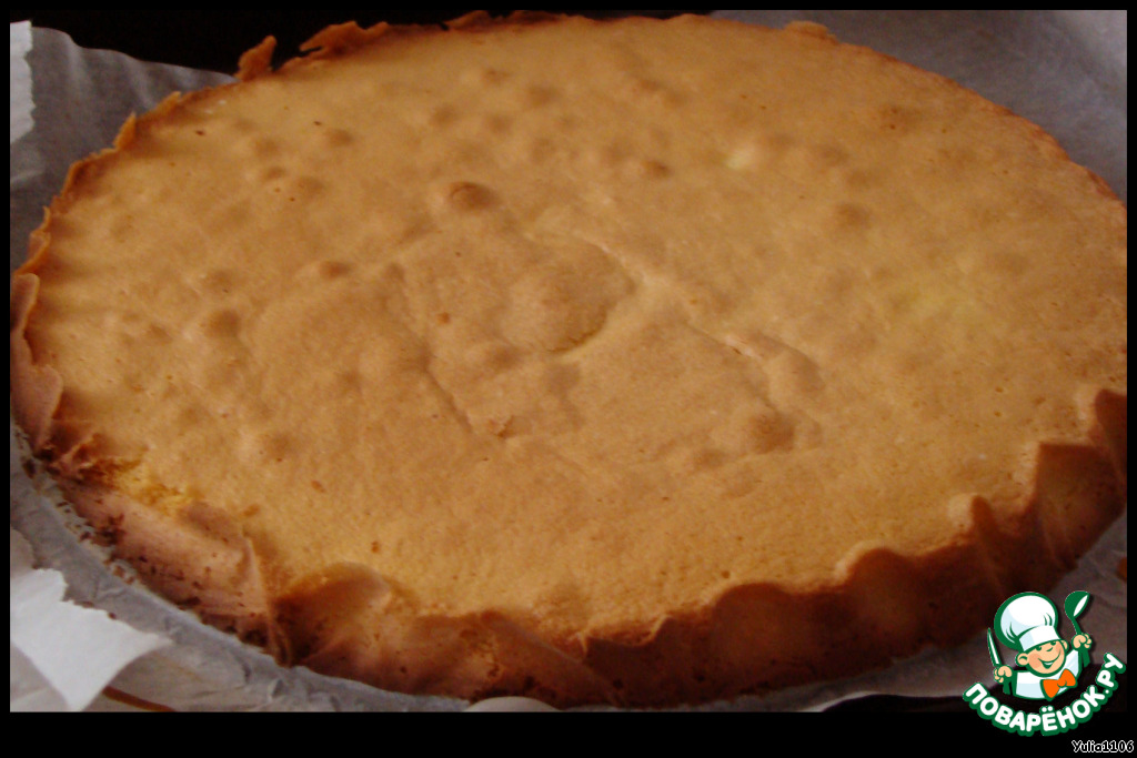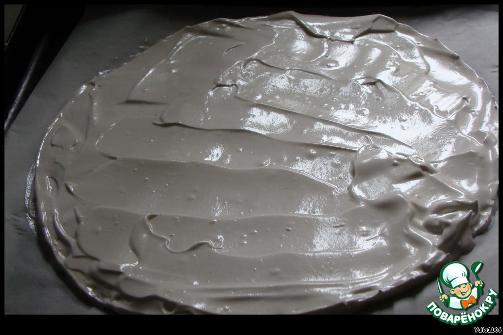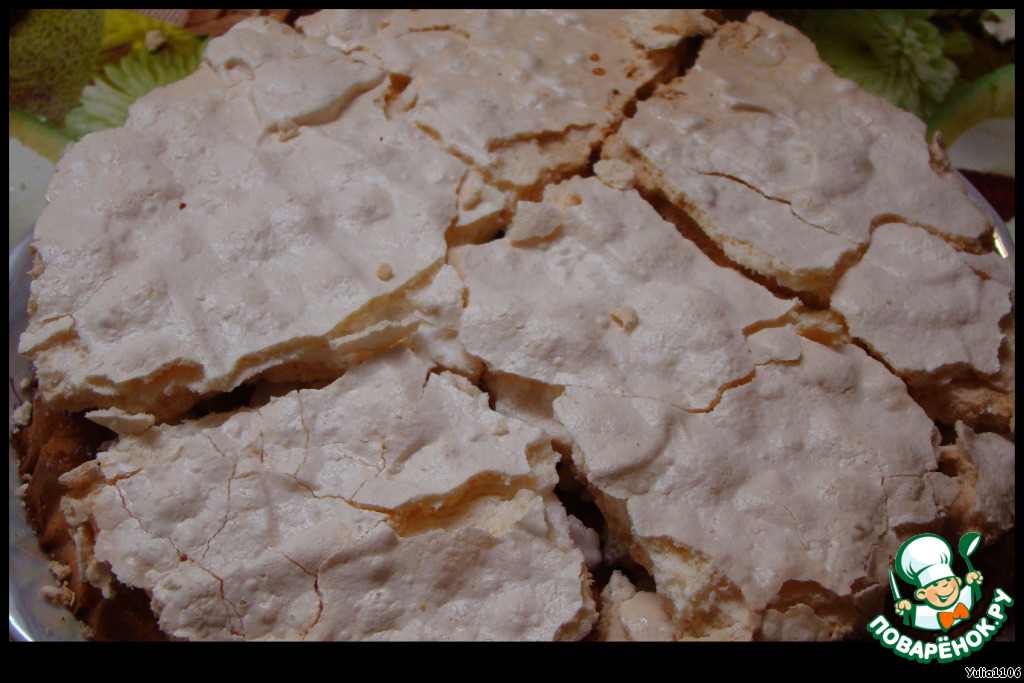 Сверху положить корж из безе, выровнять по бисквиту, лишнее отрезать (только он у меня поломался немного :()