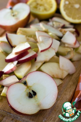 Яблоки помыть, вырезать сердцевину, можно очистить шкурку. Я шкурку снимаю только с импортных зимних яблок, поэтому ничего не очищала. Нарезать на тонкие ломтики. Сбрызнуть яблоки соком лимона, чтобы не потемнели и не потеряли прежде времени товарный вид.