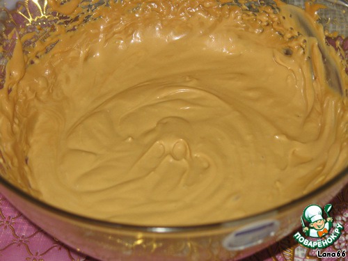 Теперь делаем крем. Взбиваем сливки с вареной сгущенкой, постепенно добавляя ее ложку за ложкой. Я еще добавила 60гр маслица сливочного, так как мне показалось, что крем жидковат. Поэтому на ваше усмотрение.Крем охладить.