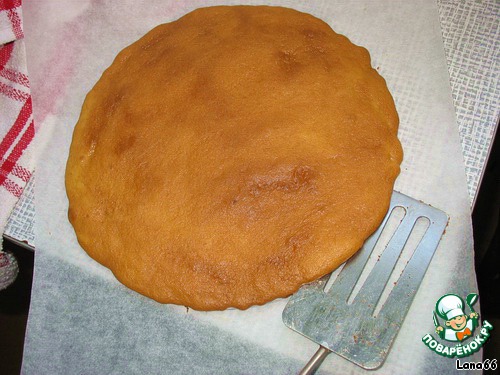 Коржи выпекать при разогретой духовке 200*С по 5 минут или до золотистого цвета.
