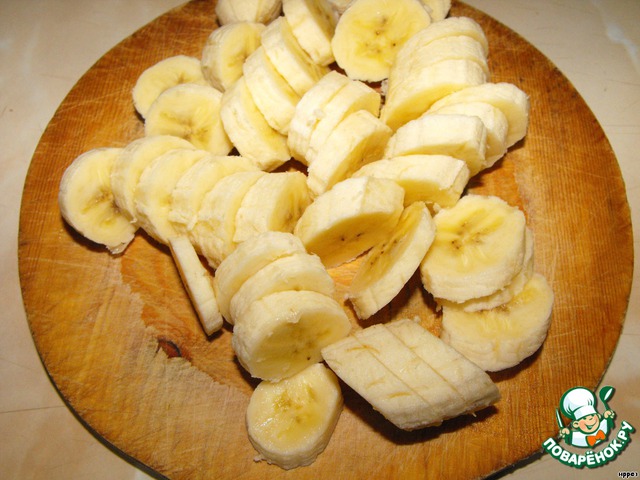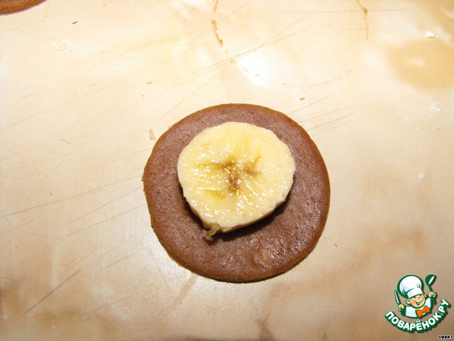 Берем один кружочек, неважно какого цвета, кладем кружочек банана.