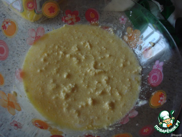 Добавить муку и замесить тесто. Тесто не должно быть слишком крутым.