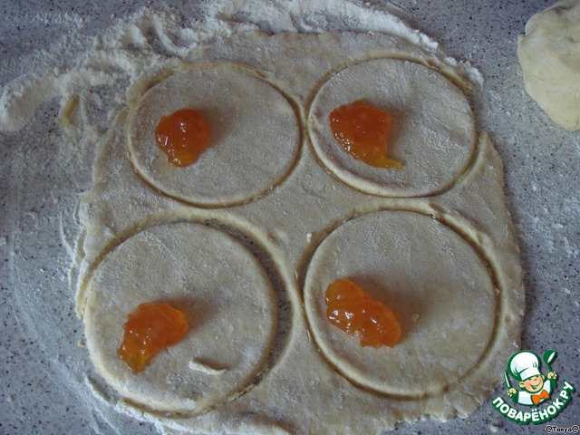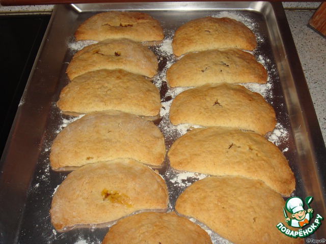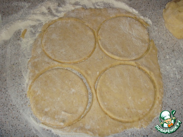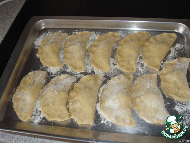 Защипнуть как чебурек. И выложить на посыпанный мукой противень.
