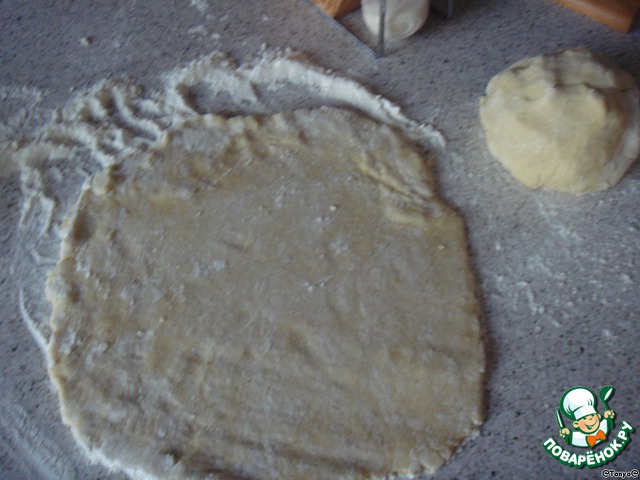 Делим тесто на 3 части и раскатываем пласты небольшие, толщиной 4 мм.