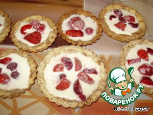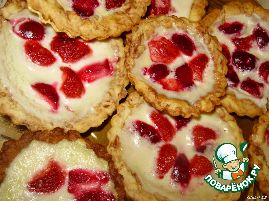 | Тарталетки из песочного теста, с ванильно - шоколадным вкусом и запеченные с ягодно - медовым крепом. Не возможно оторваться, от поедания этих вкусняшек!))) Порадуйте своих домашних ароматной и вкусной выпечкой!!! |