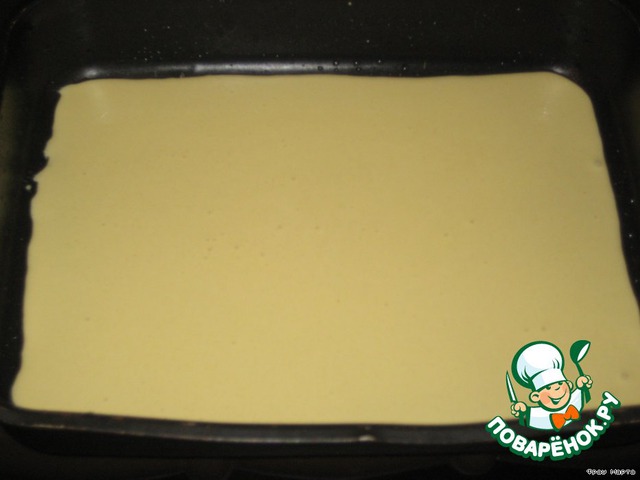 Яйца и сахар хорошо взбить. Постепенно добавить муку. Жидкое тесто вылить на смазанный растительным маслом противень или форму для запекания. Поставить в разогретую духовку и выпекать 7-10 минут при температуре 200 С.