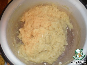 Вскипятить стакан воды. Положить туда сливочное масло и полностью его растопить. Снять с огня, добавить муки и хорошенько размешать. Слегка охладить полученную массу до теплого состояния и по одному вбить яйца. Хорошо размешать до однородного состояния.