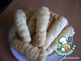 Ставим в духовку и выпекаем при 190 градусах примерно минут 15-20 зависит от духовки. Должен на трубочке появиться румяный цвет вот только главное не перепечь, а то тесто будет слишком сухое и будет сильно крошиться. У меня получились вот такие!