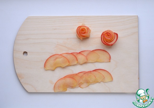 Выкладываем яблочные лепестки на бортики глубокой тарелки, чтобы лишняя жидкость стекла.