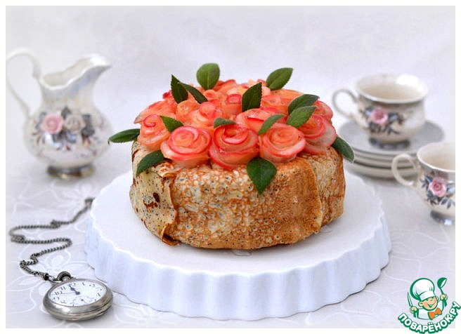 | Всех поварят поздравляю с началом масленичной недели!!! Это мой первый блинный торт! Сделала специально для этого конкурса. Признаюсь, что раньше как-то искоса поглядывала на блинные торты, сомневалась, что такой торт может понравиться мне и моим капризным домашним). Как же я ошибалась!!! Если есть еще сомневающиеся, то настоятельно вам рекомендую делать подобные торты. Это НЕОБЫКНОВЕННО ВКУСНО: о-о-очень нежно, сытно, но не тяжело. Столько разных оттенков во вкусе, которые только дополняют друг друга. И еще, не поленитесь испечь для этого торта именно 3 вида блинов. Каждый из них дает свой вкус. Особенно порадовали маковые блины. Мак чувствуется, и это дает особый тон во вкусе. Мак лучше добавьте распаренный. Несмотря на то, что описание рецепта и количество ингредиентов велико, торт не сложен в приготовлении, и времени на исполнение занимает не так много. Блины можно испечь заранее. Можно даже заморозить, а в нужный момент достать из морозильной камеры и собрать торт. |