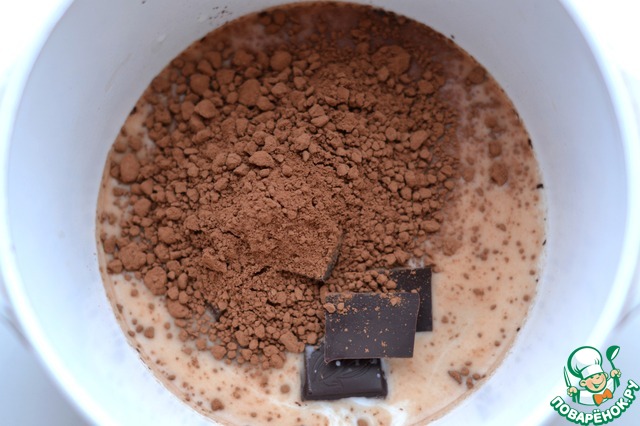 В 100 мл молока распустить шоколад (на водяной бане), добавив какао-порошок.