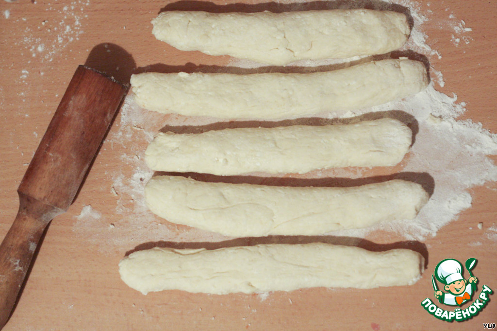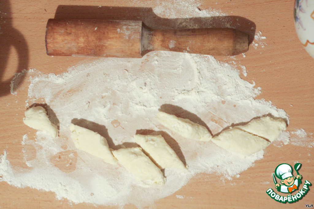 Добавляем муку до загустения, чтобы можно было скатать колбаски, но не слишком много, а то получатся резиновые и вкус творога станет менее отчетливым.