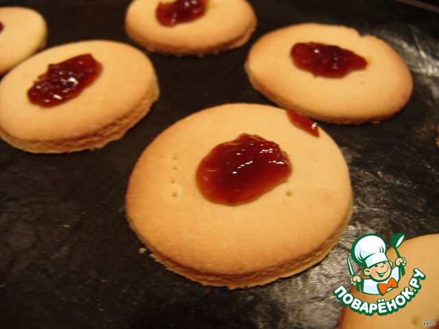 На испечённые и остывшие кружки выложить по 1 ч.л. вашего любимого варенья.