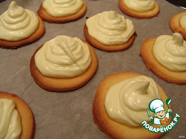 | По типу корзиночек с белковым кремом. Но так как формочек для корзиночек у меня нет, а пирожное очень захотелось, то я, немного, пофантазировала. |