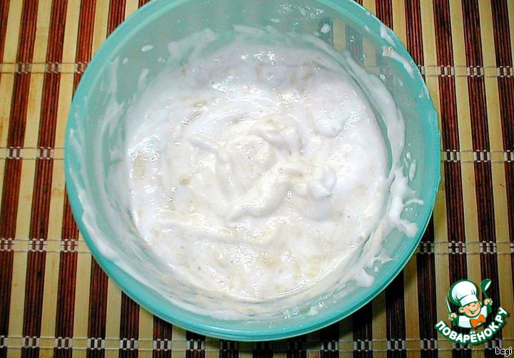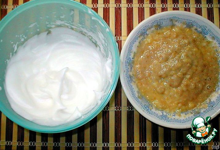 Часть взбитых белков отделить в другую емкость, примерно 1/3 от массы.