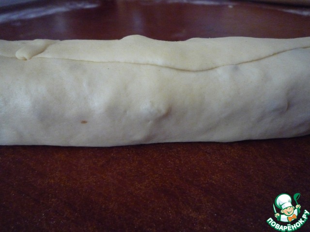 Орех слегка предавить в тесто. Осторожно свернуть рулет.