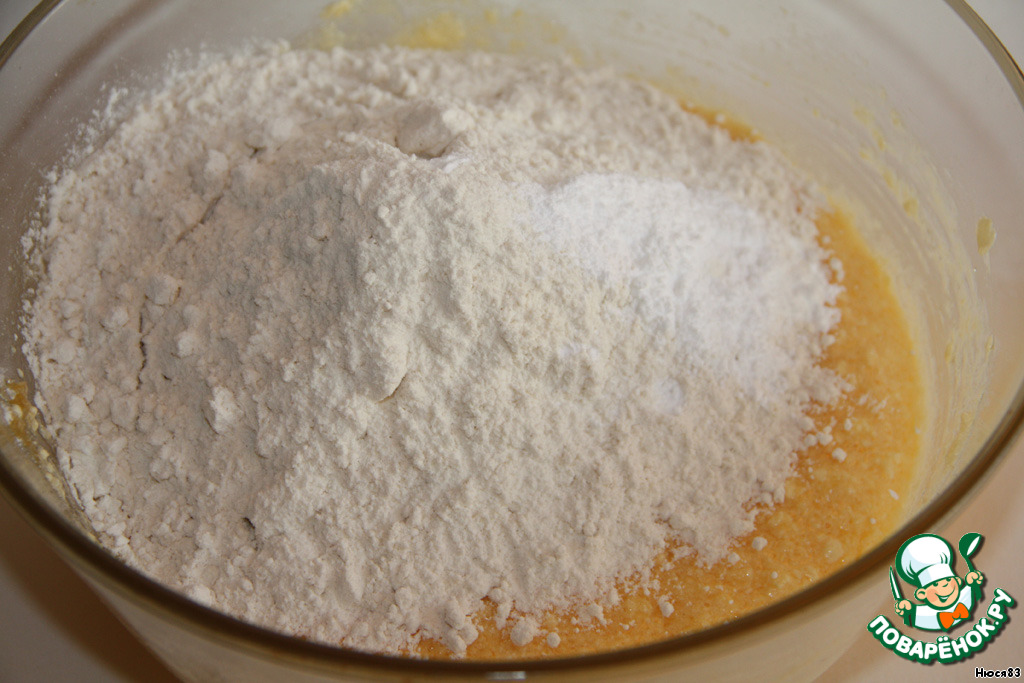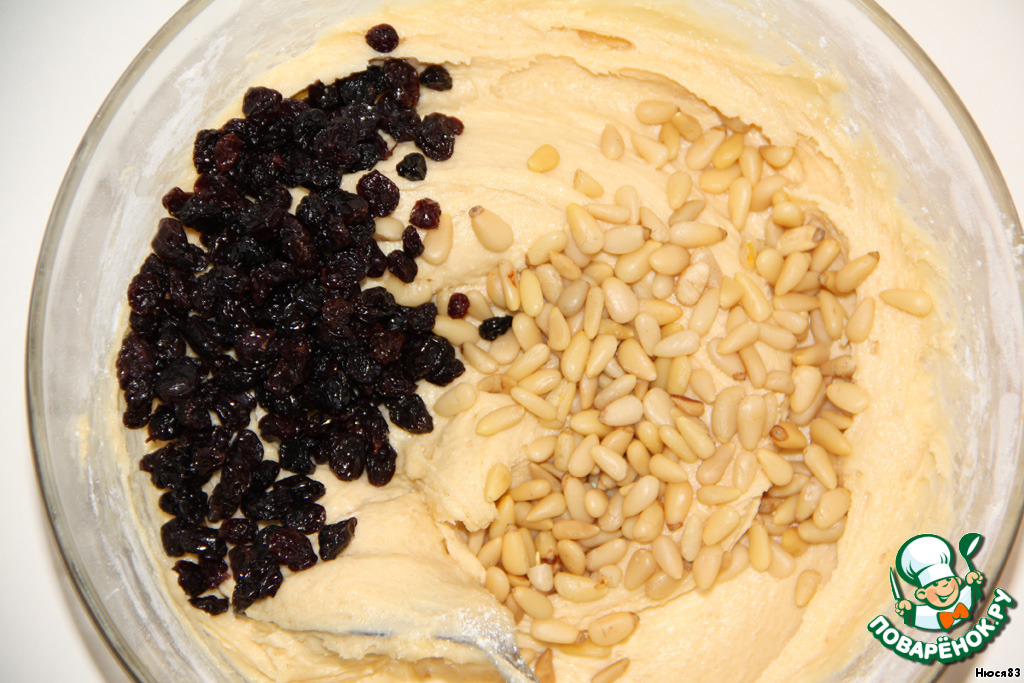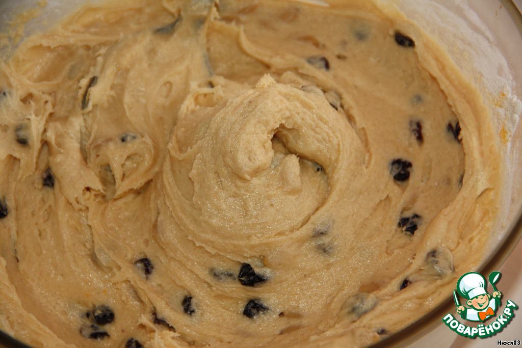 Вымешиваем до однородного распределения наполнителя в тесте.