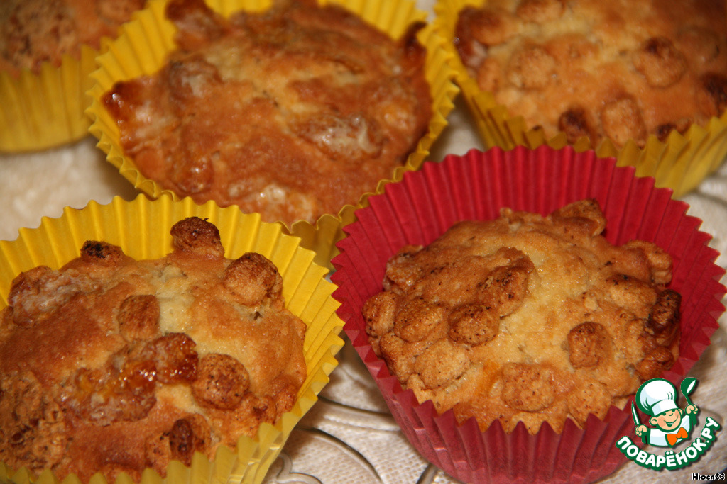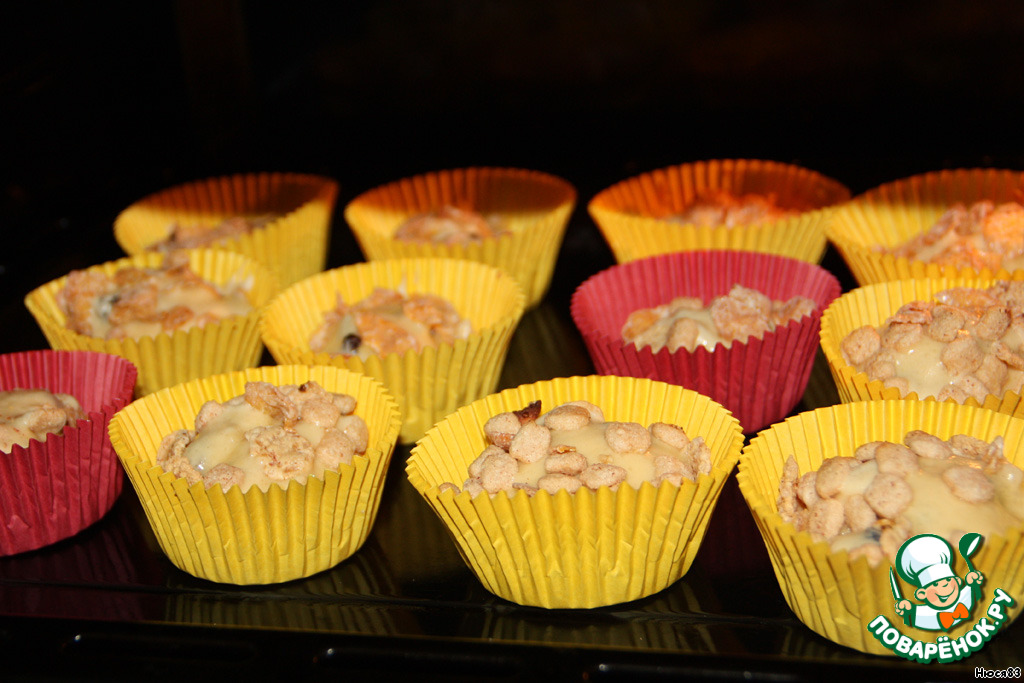 Я выпекаю в одноразовых бумажных формочках, но можно и на противне, застеленном пекарской бумагой. Тогда они станут более плоскими и похожими на печенье. Выпекаем при 200 градусах около 20 минут. Следить за цветом хлопьев.