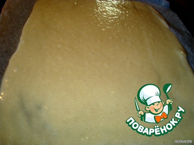 Достаем противень, укладываем на него бумагу для выпечки, распределяем тесто тонким слоем - приблизительно, 7-8 мм, ставим в духовку. Выпекаем 5 минут!