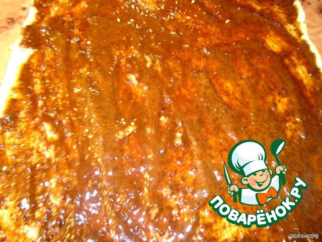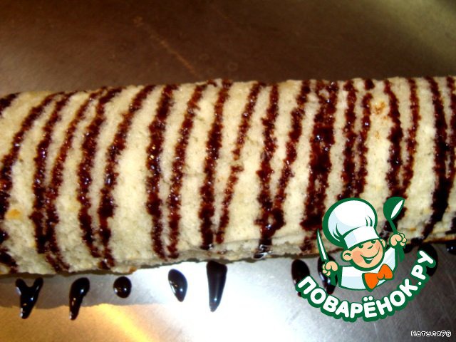 Скручиваем рулет, поливаем растопленным шоколадом. Все это проделываем с еще горячим рулетом.