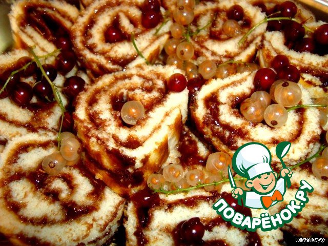 Когда рулет остыл, нарезаем, украшаем смородиной и подаем к столу.