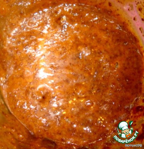 Для начинки взбиваем абрикосовое варенье с раскрошенным шоколадом.
