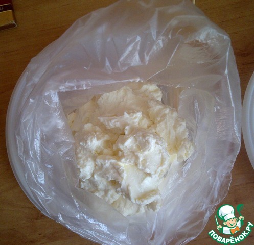 Выкладываем творожную массу в (конвертик кулинарный, у меня нет его, по этому пакетик одноразовый с отрезанным уголком)