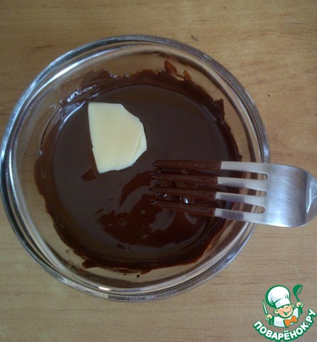 В растопленный шоколад добавить ложку сливочного масла и размешать о его растворения.