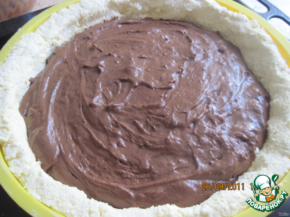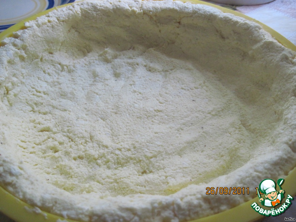 Выложить творожную массу в форму (я пекла в силиконовой, ничем не смазывала, если форма обычная - смазать маслом, посыпать сухарями или манкой), сформировать бортик.
