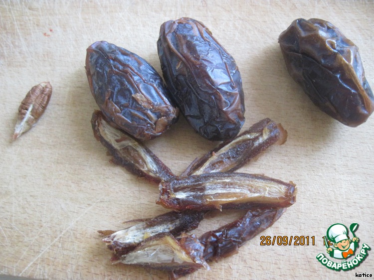 Подготовить финики (помыть, высушить, удалить косточку, нарезать).