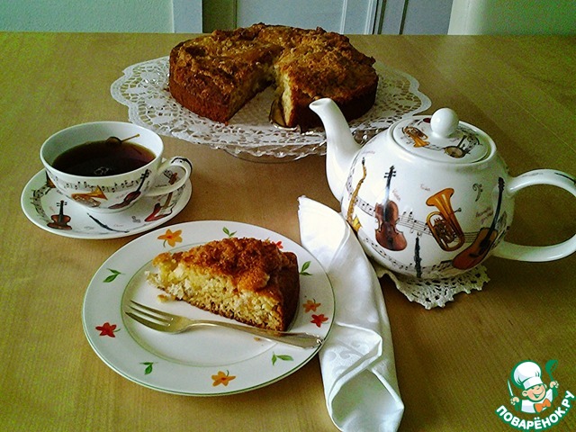 Второе. Знаю, на сайте есть похожие рецепты, но они все со сливками, которые делают пирог более мокрым.