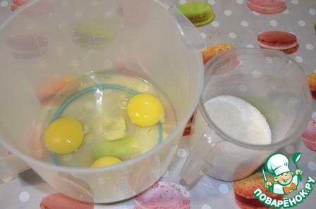 Миксером взбить яйца с сахаром.