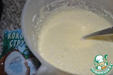 Положить кокосовую стружку. Все хорошо перемешать.