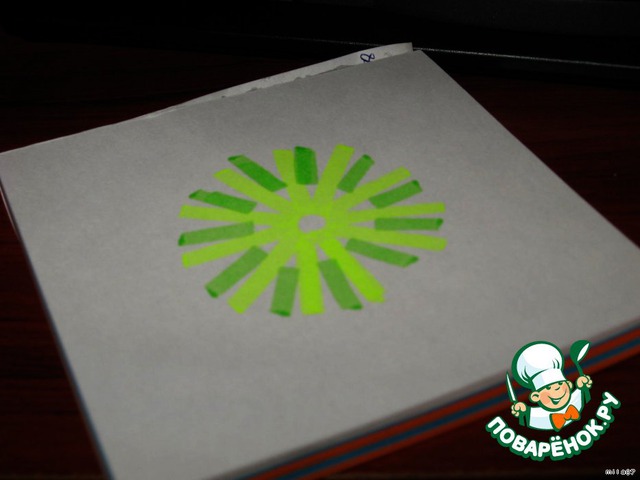 Затем между большими лепестками выкладываем маленькие (темно зеленый).