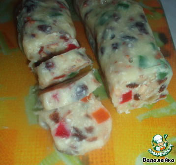 Если цукаты у вас большими кусочками, то их тоже порезать (у меня были изначально небольшими кубиками).