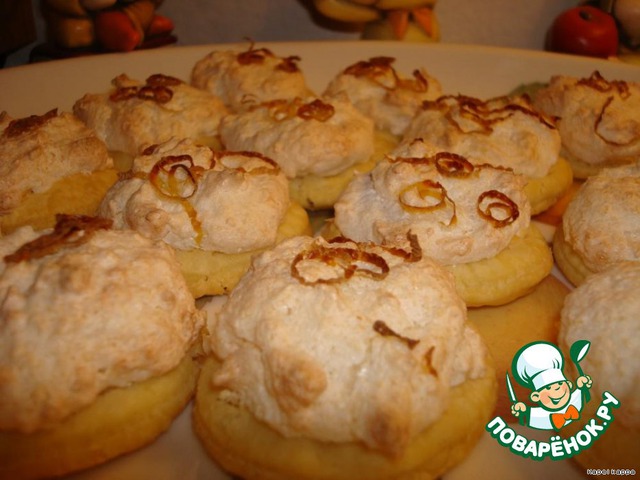 Перед выпечкой печенюшек,приготовить начинку.Взбить белки с сахаром и 1ст.л. лимонного сока,