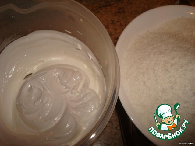 взбивать пока сахар не растворится,добавить мелко натёртую цедру лимона 1/2ч.л и кокосовую