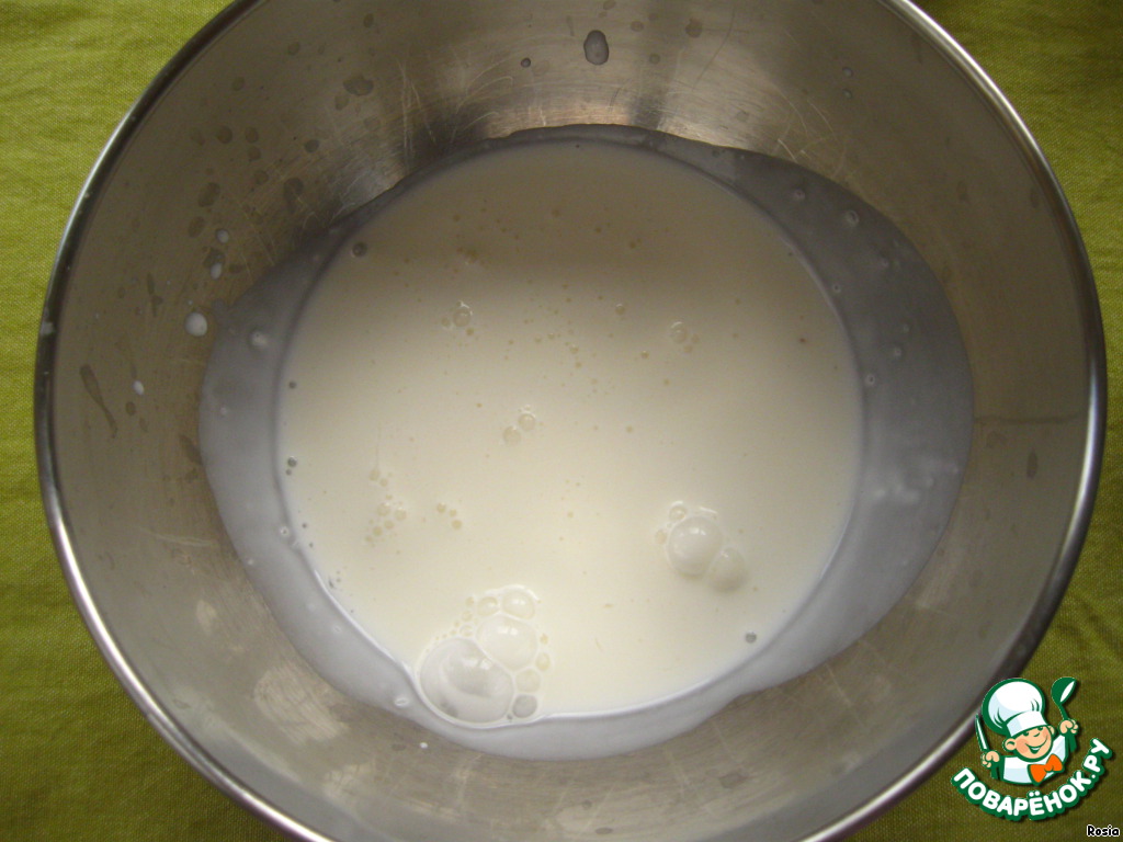 Берем 100 мл сливок. Взбиваем миксером.