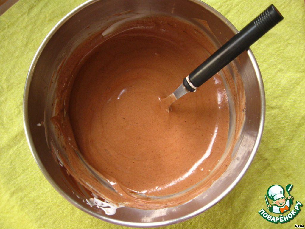 Сначала в шоколад добавляем 2 ч.л. сливок, хорошо перемешиваем ложкой и + остальные сливки, снова перемешать.