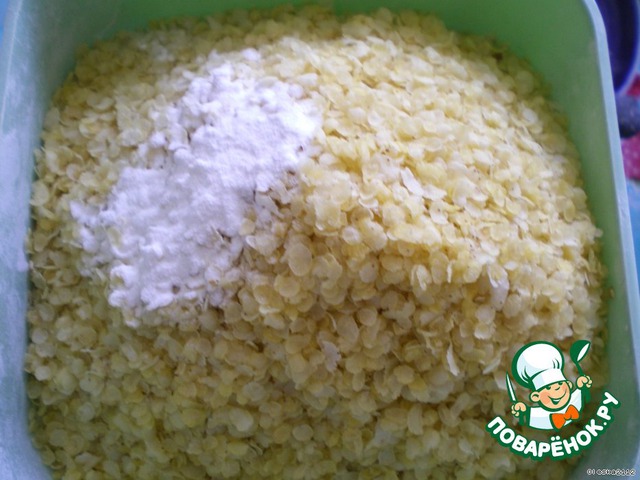Соединить вместе муку, разрыхлитель, пшённые хлопья и соль (если добавляете).