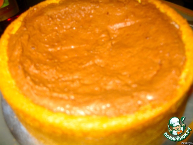 Теперь заполняем слоем шоколадного суфле.