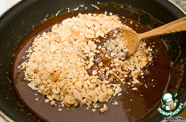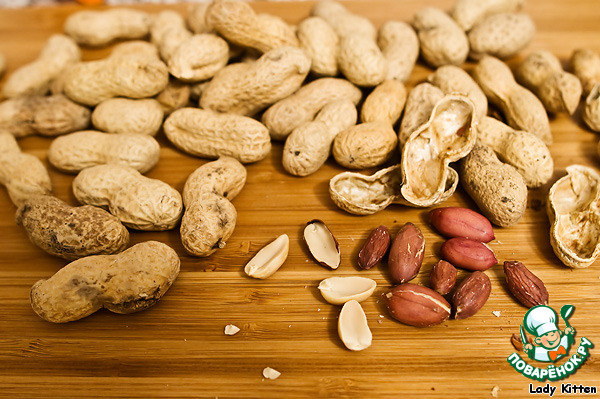 Арахис почистить, очистить от шелухи и мелко нарубить.