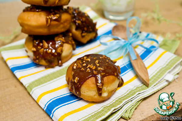 Пончики «Суфганийот» с ванильной начинкой в карамельно-арахисовой глазури