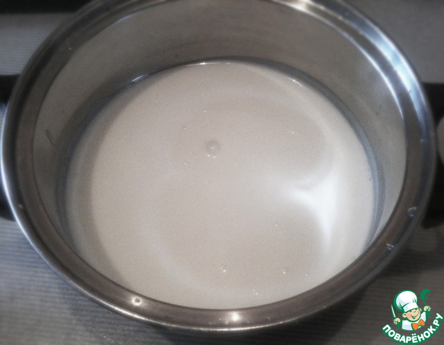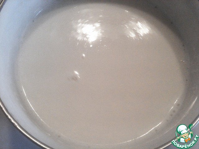 Выливаем кефир в кастрюлю и ставим на плиту. Кефир нам нужно лишь немного подогреть, чтобы он стал теплым.