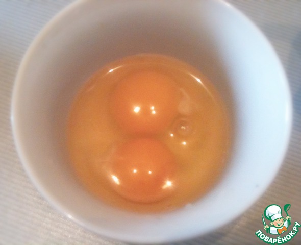 Разбиваем 2 небольших яйца и добавляем их в кефир.